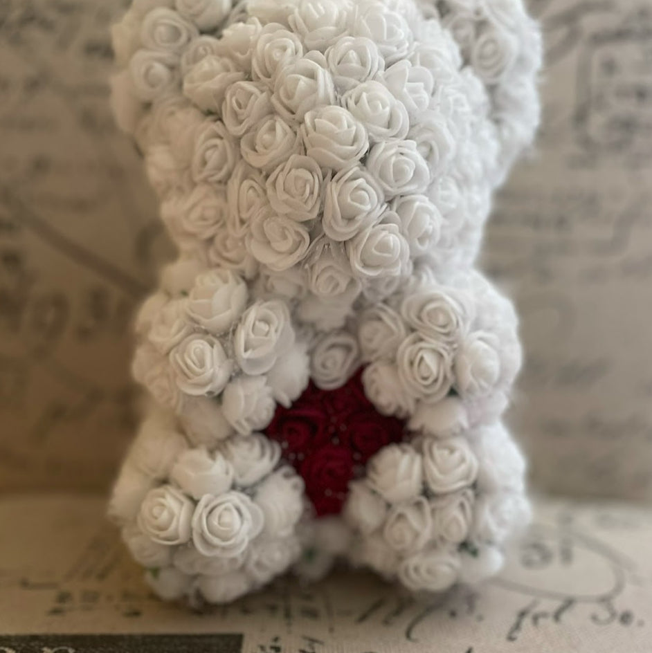 Offrez un ours en fleurs qui ne ressemble à aucun autre ! Ce petit ours de 15 à 20 cm, entièrement fait à la main et personnalisé selon vos envies, est parfait pour une occasion spéciale comme un anniversaire, un mariage, ou même pour dire je t’aime de manière originale.