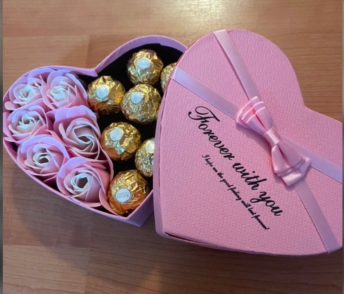 Offrez un concentré d’amour avec cette magnifique boîte en forme de cœur, entièrement faite main, garnie de fleurs fraîches et de chocolats savoureux 🍬🌹. Un cadeau unique et élégant, parfait pour tous les événements : anniversaire 🎉, Saint-Valentin 💘, fête des mères 💐, ou simplement pour faire plaisir 💝.
